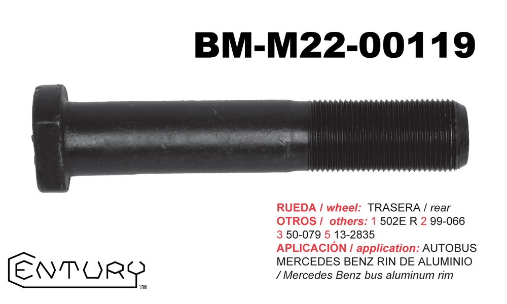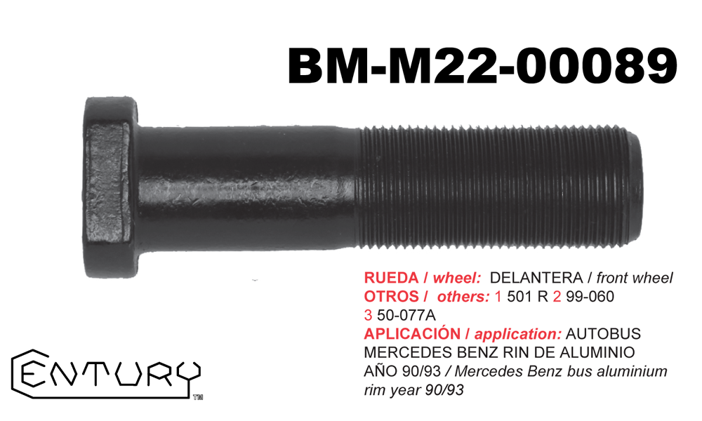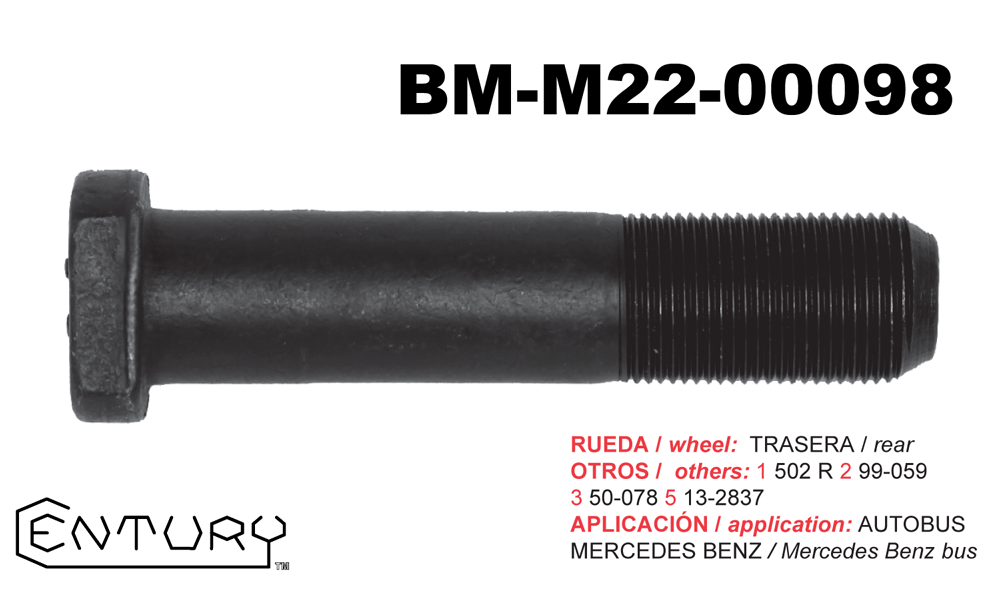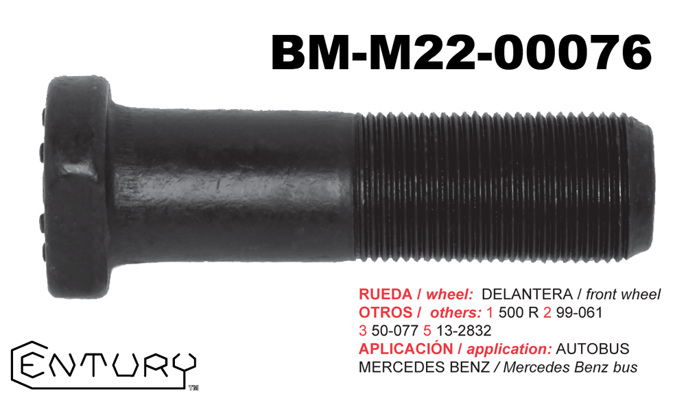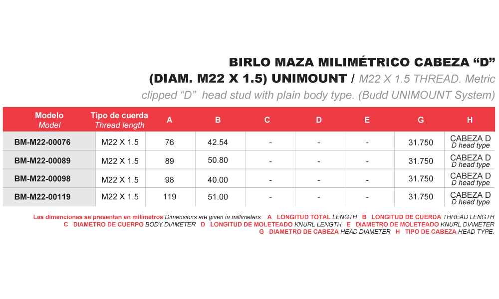 M22 X 1.5 THREAD. Metric clipped “D” head stud with plain body type. (Budd UNIMOUNT System)