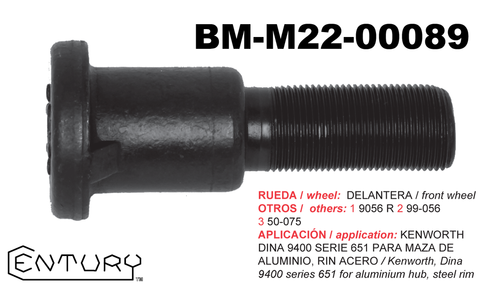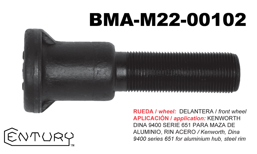 M22 X 1.5 THREAD. Metric wedged head stud with plain body type. (Budd UNIMOUNT System)
