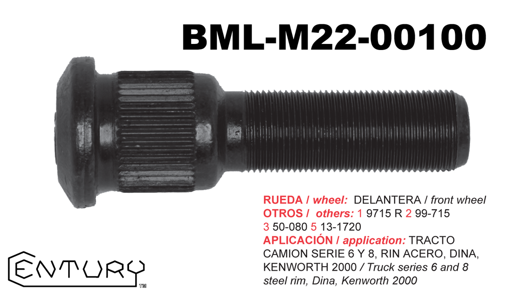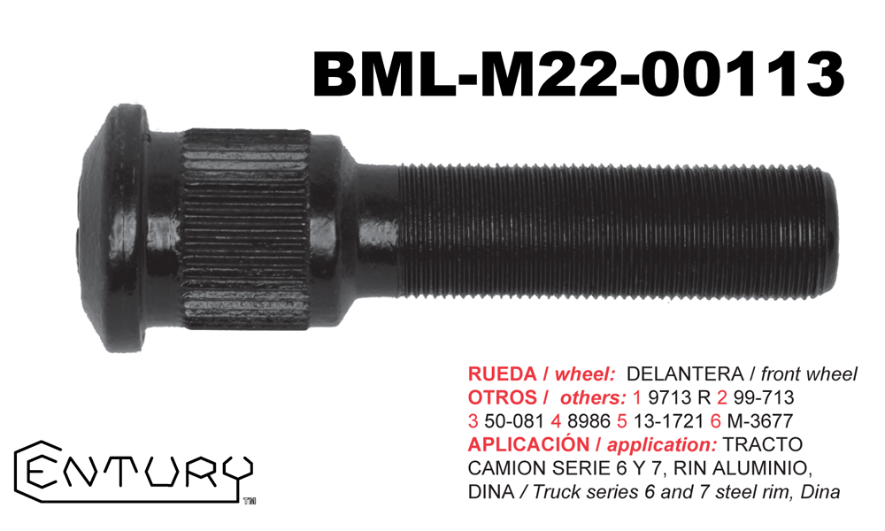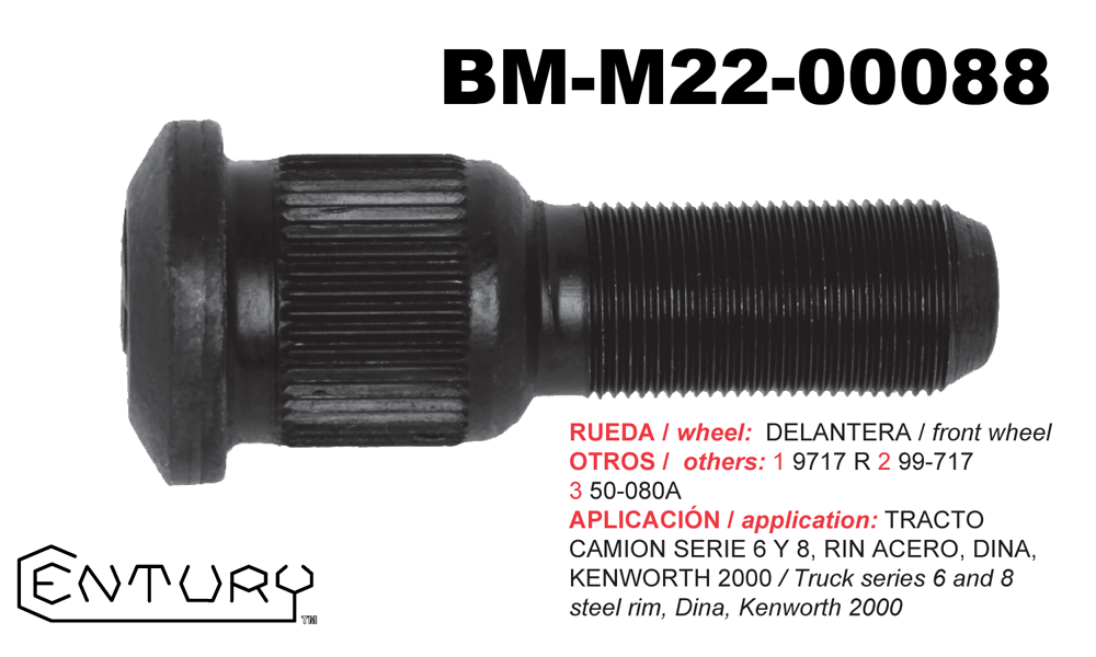 M22 X 1.5 THREAD. Metric rounded head stud with large serrated body type. (Budd UNIMOUNT System)