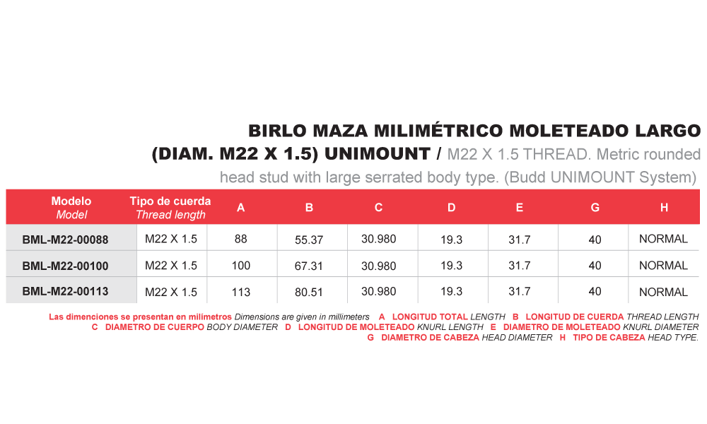 Sé el primero en valorar “BIRLO MAZA MILIMÉTRICO MOLETEADO LARGO (DIAM. M22 X 1.5) UNIMOUNT” Cancelar la respuesta