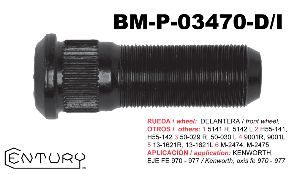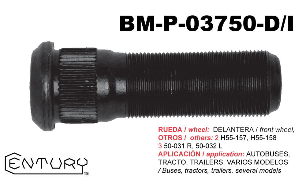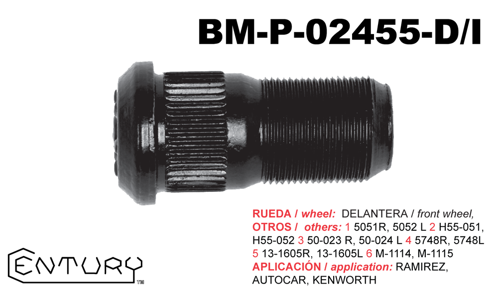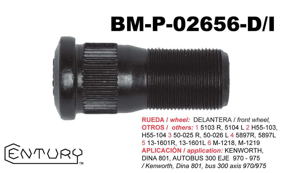 1-1/8”-16 THREAD. Front Wheel stud serrated body type
