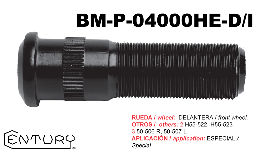 1-1/8”-16 THREAD. Front Wheel stud with serrated body type – special shoulder
