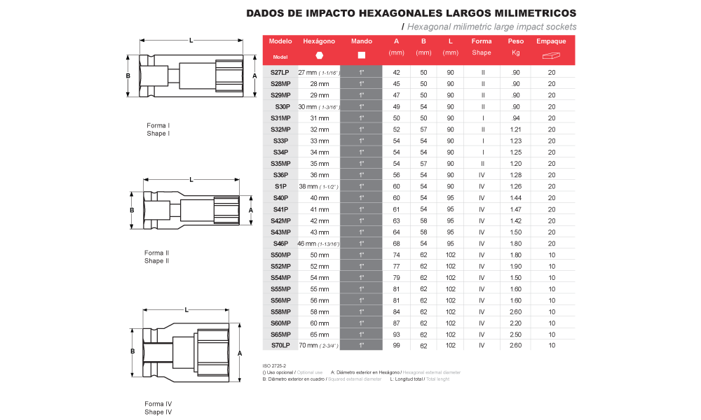 DADOS DE IMPACTO HEXAGONALES LARGOS MILIMETRICOS S MP