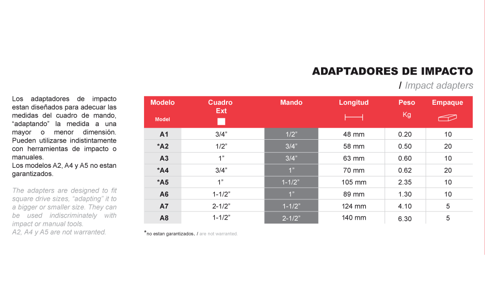ADAPTADORES DE IMPACTO / Impact adapters