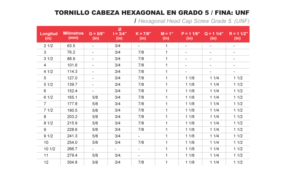 TORNILLO CABEZA HEXAGONAL EN GRADO 8 / FINA: UNF