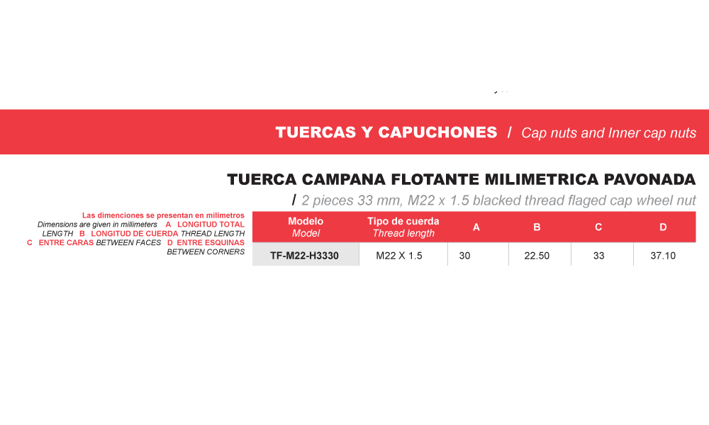 2 pieces 33 mm, M22 x 1.5 blacked thread flaged cap wheel nut
